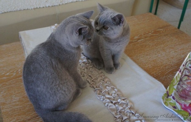 Świętujemy 1 roczek !!! Kotka brytyjska niebieska Imperial Blue i kot brytyjski liliowy Ice Cloud mieszkają razem. Serdecznie gratuluję.
