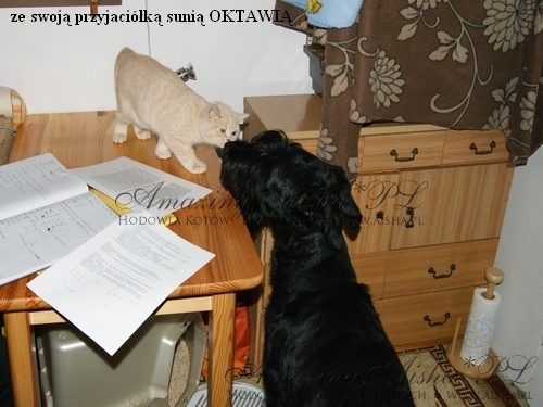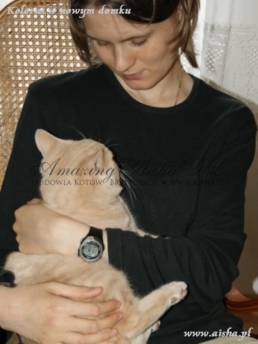 ..Nasza mądralinka na dzień dobry daje buziaczka wyciaga mordeczkę do pocałowania potem kładzie się na pleckach czekająć na drapanie pod bródką i brzuszka oczywiście mająć włącony motorek . Kompletnego bzika mamy na jego punkcie , kochamy go niesamowicie , dla nas jest to malutki cud natury... ..każdy z moich znajomych wie ,ze mamy najpiekniejszego kociaczka na świecie"